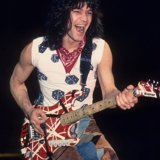 We went to see them live, 3 shows in a row. We were far back in the stadium’s- in the nosebleed seats, cos that’s all we could afford. It didn’t even matter. They were like a steam roller, a mythical creature of epic proportions – absolutely catalyzing the crowd into a single, triumphant entity. Dave was hilariously funny, ad libbing his assless chaps ass off. The fact that he used the same script every night was one of my first lessons in show biz. It seemed so natural, every night – but he said the same shit! Mike was a pulsating giant on the bass, and he sang way better than Dave ever could, but no one cared. Alex was … he was like a Sensei Drum King – a master of flashing cymbals and totem toms- a whirling warrior of rhythm, driving the whole entity with supreme authority. And then … there was Eddie. Transcendent, epic, legend in the making, guitar god, trailblazer, artist, machine … just indescribably, wildly, unthinkably powerful. He changed everything, that Eddie.